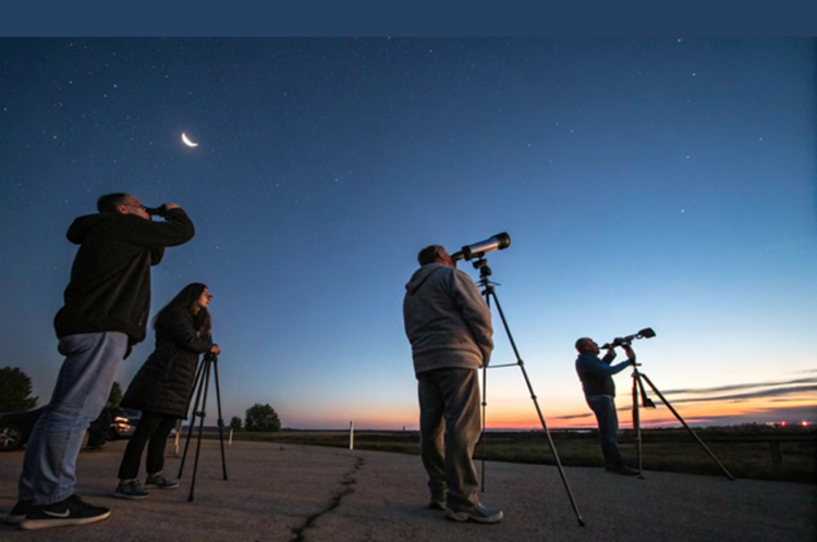 Petugas melakukan pemantauan hilal Syawal 1447 H menggunakan teleskop di titik observasi. (Foto: Urbancity)
