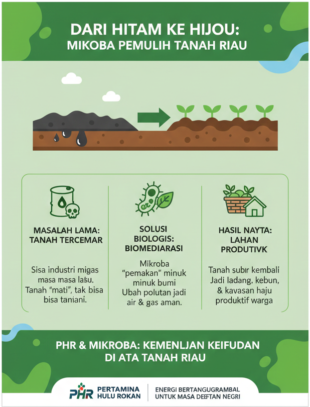 Selama puluhan tahun, sisa-sisa minyak bumi dari masa lalu sempat membuat beberapa titik lahan menjadi “mati”—keras, hitam, dan enggan ditumbuhi tanaman. Kini, berkat bantuan pasukan tak kasat mata bernama mikroba, lahan-lahan itu mulai bernapas kembali.