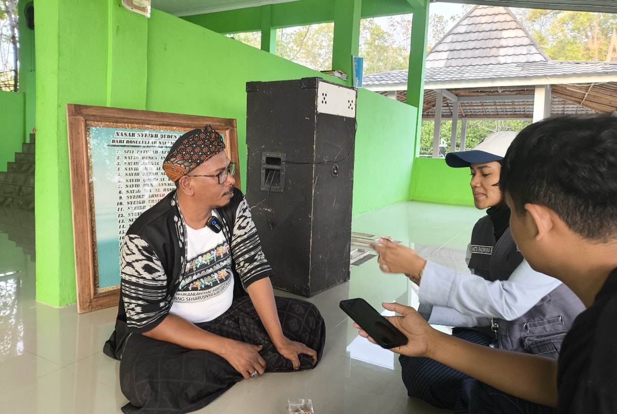 Tim KKN Jurnalistik UIC tengah mewawancarai penjaga makam yang bernama Rasna (14/8)