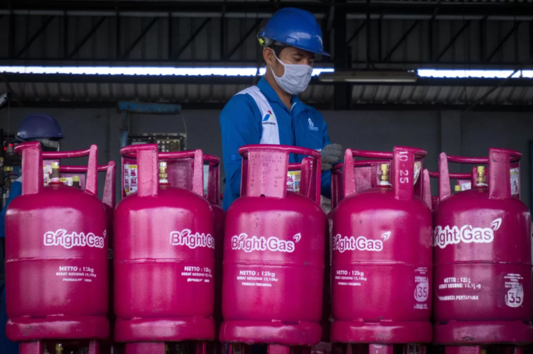 Petugas Pertamina mengecek kesiapan pasokan LPG dan mengedukasi warga tentang cara memasak efisien. (Foto: Urbancity/Pool/Dok. Pertamina)