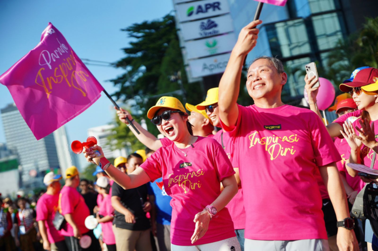 Wamen Ekraf Irene Umar menyaksikan Parade Inspirasi Diri Road to Pagelaran Sabang Merauke di Bundaran HI. (Foto: Urbancity/Pool/Dok. Kemen Ekraf)